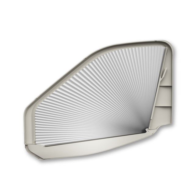 Ajustado com precisão para ambos os lados e emparelhado com nossa cortina de para-brisa FR 400, ele oferece proteção abrangente contra o sol, frio e olhares curiosos. O material de escurecimento em favo de mel com pregas duplas garante isolamento ideal e durabilidade excepcional.