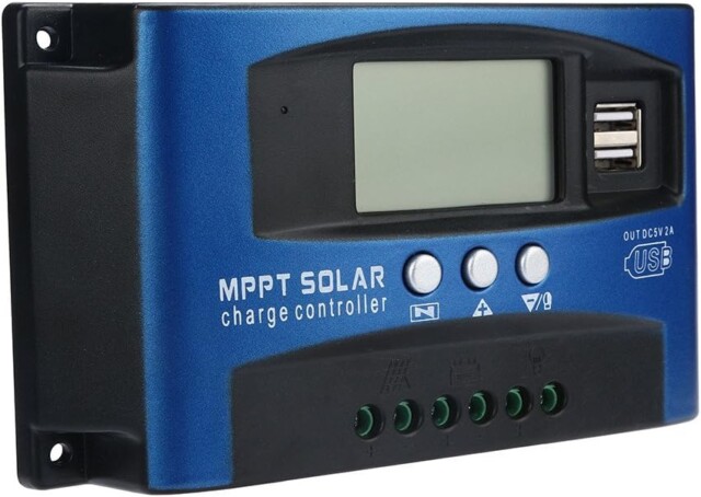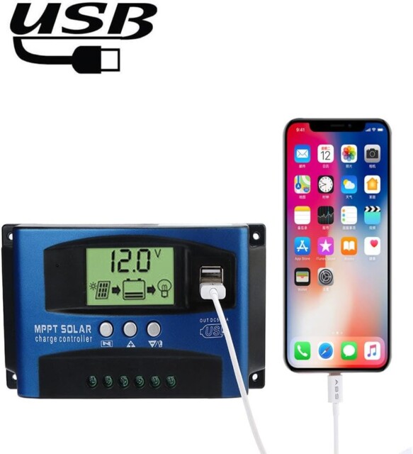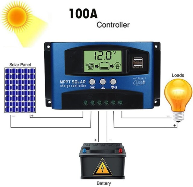 Regulador de carga de painel solar MPPT 100A, controle de rastreamento de foco automático de 12 V/24 V e corrente de carga.